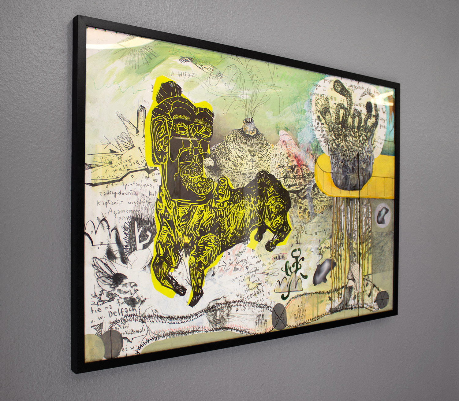 Original tegning, linoleumstryk og collage på papir af Piotr Dudek