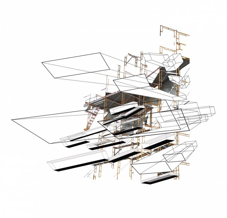 En del af en serie af arbejde, hvor arkitektoniske konstruktioner konfronteres. Den erobrede struktur med ren funktionel kvalitet forarbejdes og omdannes til et motiv af æstetisk værdi. Det gives en ny identitet og en ny historie i mellem lag af funktion og planlagt form.