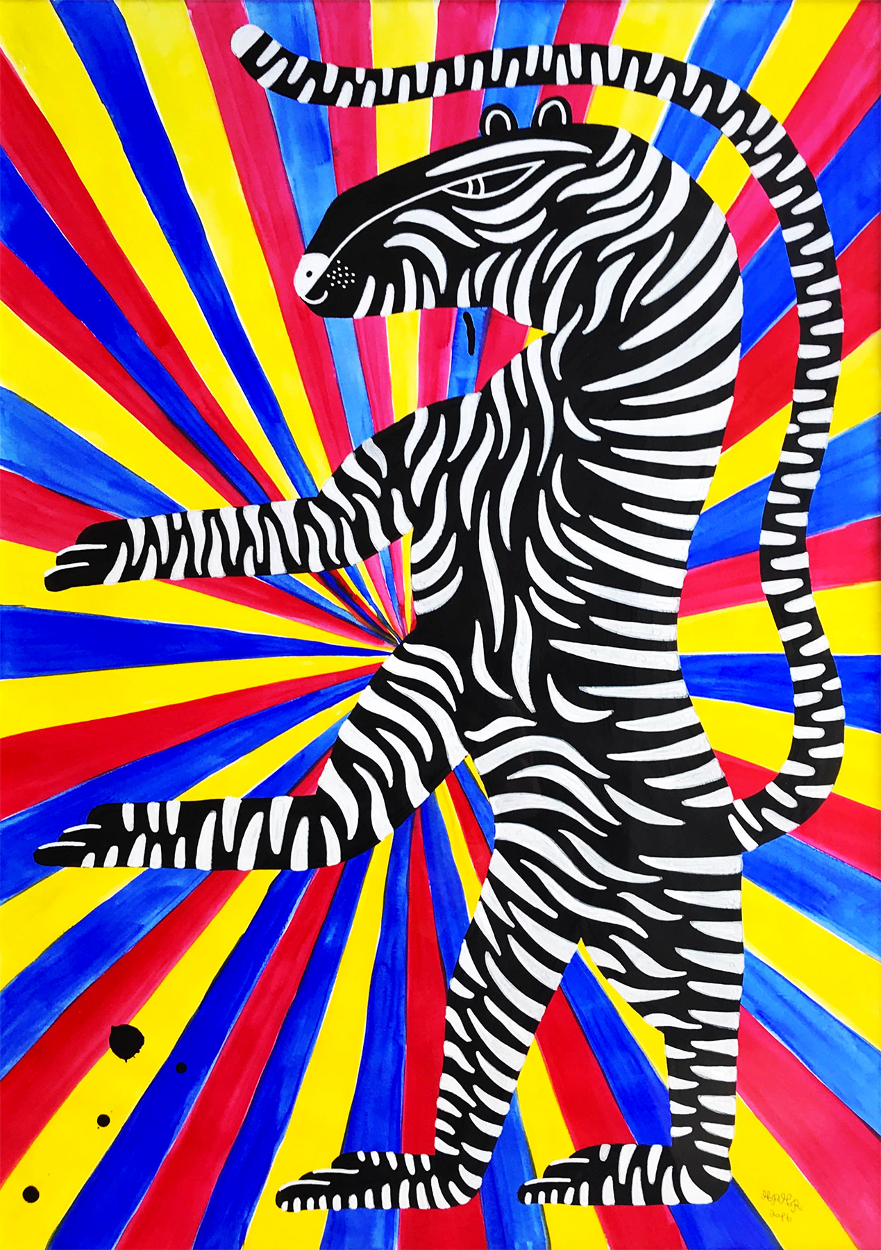 Akryl, akvarel og tusch på lækkert tykt kunstpapir.