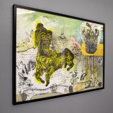 Original tegning, linoleumstryk og collage på papir af Piotr Dudek
